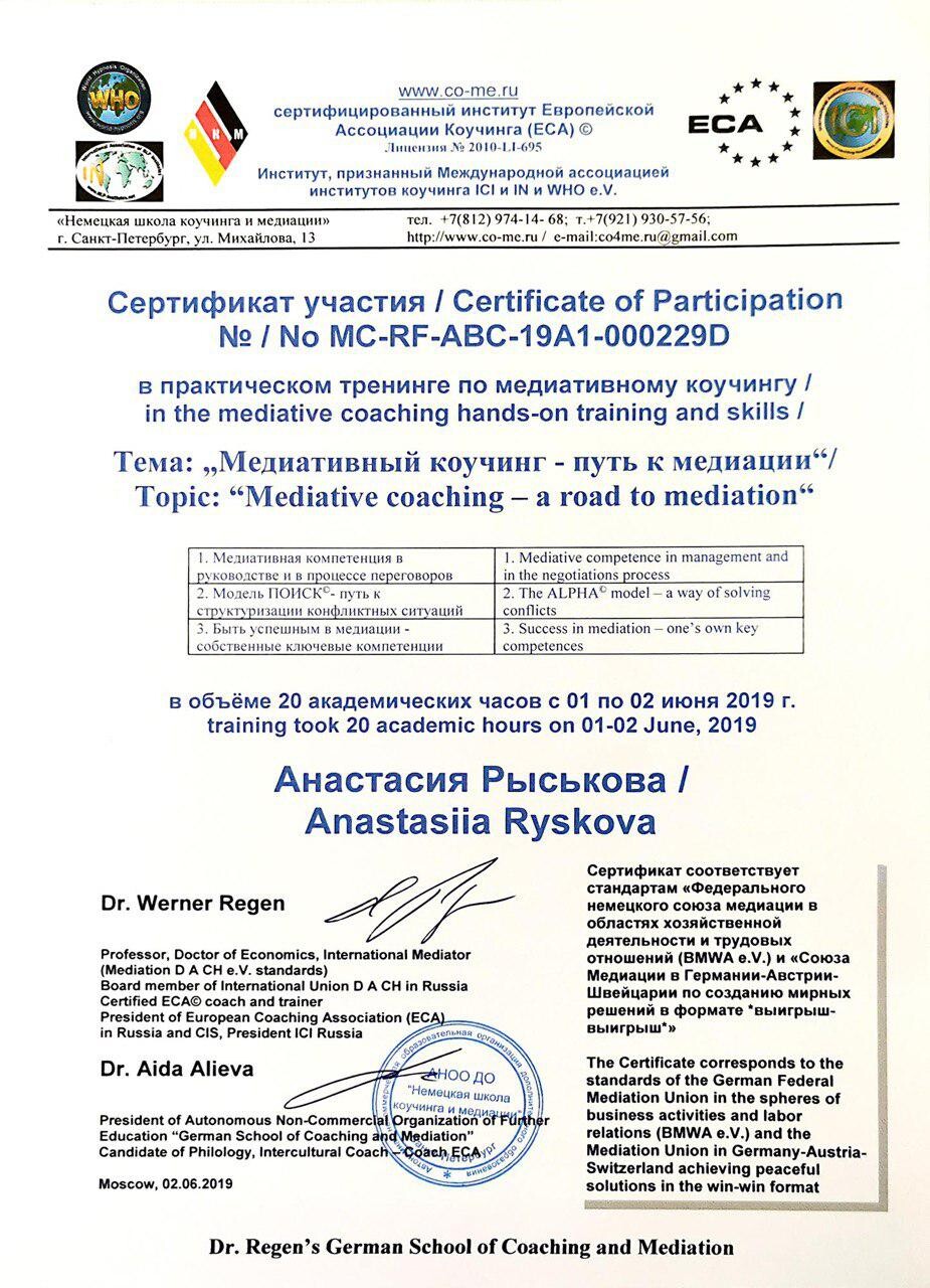 - Медитативный Коуч Европейской ассоциации
